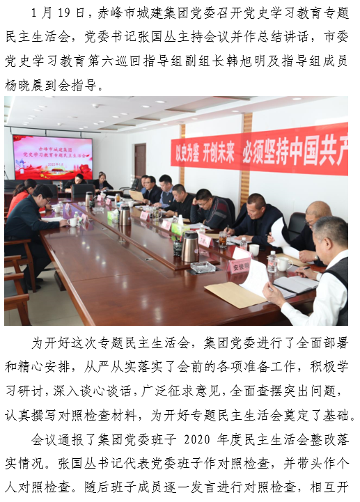赤峰市城建集團黨委 召開黨史學習教育專題民主生活會