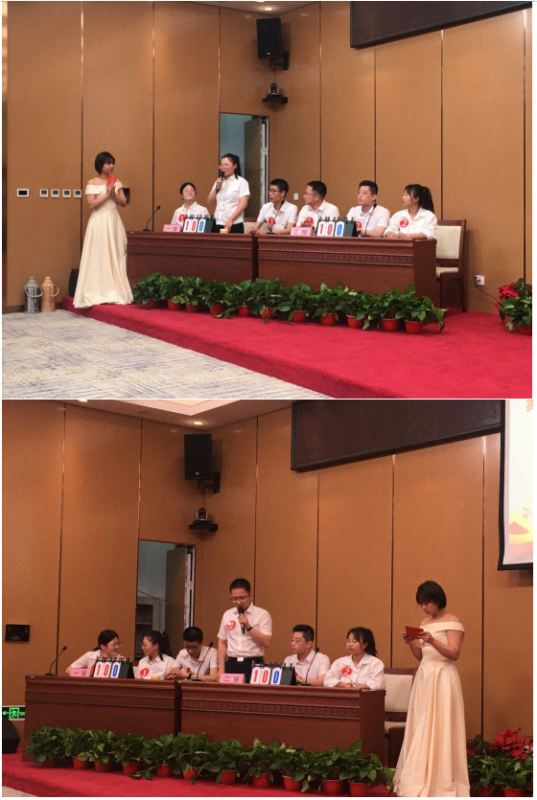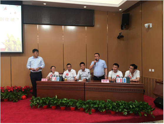 本次黨史知識競賽緊緊圍繞百年黨史和黨風(fēng)廉政建設(shè)展開,設(shè)置了個人必答題、小組必答題、搶答題、加賽題等多個環(huán)節(jié)。活動中,現(xiàn)場參賽選手們認(rèn)真思考、沉著應(yīng)答,場上積分你追我趕,幾度膠著,現(xiàn)場搶答聲音此起彼伏,現(xiàn)場觀眾掌聲呼聲不斷。在小組晉級賽時,還出現(xiàn)了平分加賽的現(xiàn)象,現(xiàn)場氛圍緊張激烈,選手們表現(xiàn)斗志昂揚,團隊配合密切,充分展現(xiàn)了集團廣大黨員職工扎實的理論基礎(chǔ)、良好的心理素質(zhì)和勇爭第一的精神風(fēng)貌。通過激烈角逐,第一梯隊的張慧芳、李京京和王久亮獲得了冠軍,比賽在和諧熱烈的氛圍中圓滿落幕。集團領(lǐng)導(dǎo)班子成員出席活動并為獲獎人員頒獎,集團職工100余人觀賽。